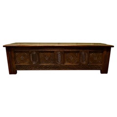 Coffre français fabriqué vers 1900. Décoré de fleurs sculptées. Le design de ce coffre est délibérément rustique. L'intérieur est doublé de tissu. Très décoratif et plein de caractè...