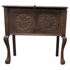 Coffre français fabriqué vers 1900. Décoré de fleurs sculptées. Le design de ce coffre est délibérément rustique. L'intérieur est doublé de tissu. Très décoratif et plein de caractè...