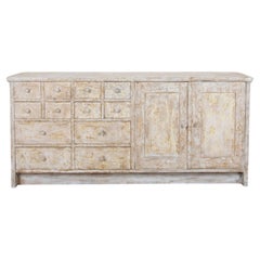 Buffet en pin datant d'environ 1910. L'armoire a conservé sa peinture d'origine avec une belle patine. L'armoire est équipée d'une serrure à clé qui fonctionne bien. Cette armoire a ...