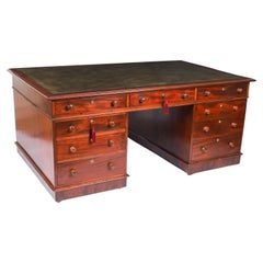 Le bureau de direction Art déco hollandais se caractérise par un bord avant incurvé et des ferrures en laiton. Les détails teintés foncés sur le bord du plateau du bureau et sur la b...