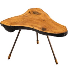 Une authentique table sculpturale "Baumtisch" des années 1950, conçue et fabriquée par Carl Auböck II. Cette pièce minimaliste inhabituelle est fabriquée à partir d'une plaque de boi...