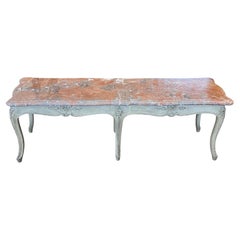 Table basse en bois et en marbre conçue et fabriquée au Brésil, C.C.. Cassure modérée sur un coin du marbre. Variation naturelle de la couleur avec de subtiles inclusions vertes. ...
