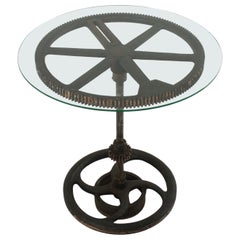 Table en fer forgé et verre, Belgique mid-century modern. Extravagante table d'appoint en fer forgé artisanal avec plateau de 19" en verre. Composition en fer forgé, datant des anné...