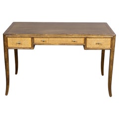 Petit guéridon italien en laiton et bois du milieu du siècle