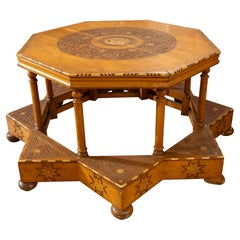 Cette étonnante table marocaine de forme octogonale est incrustée de divers bois, d'os et de nacre et date des année...