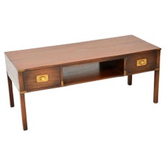 Table basse ou console de café vintage anglaise à plateau en cuir de style Campaigner