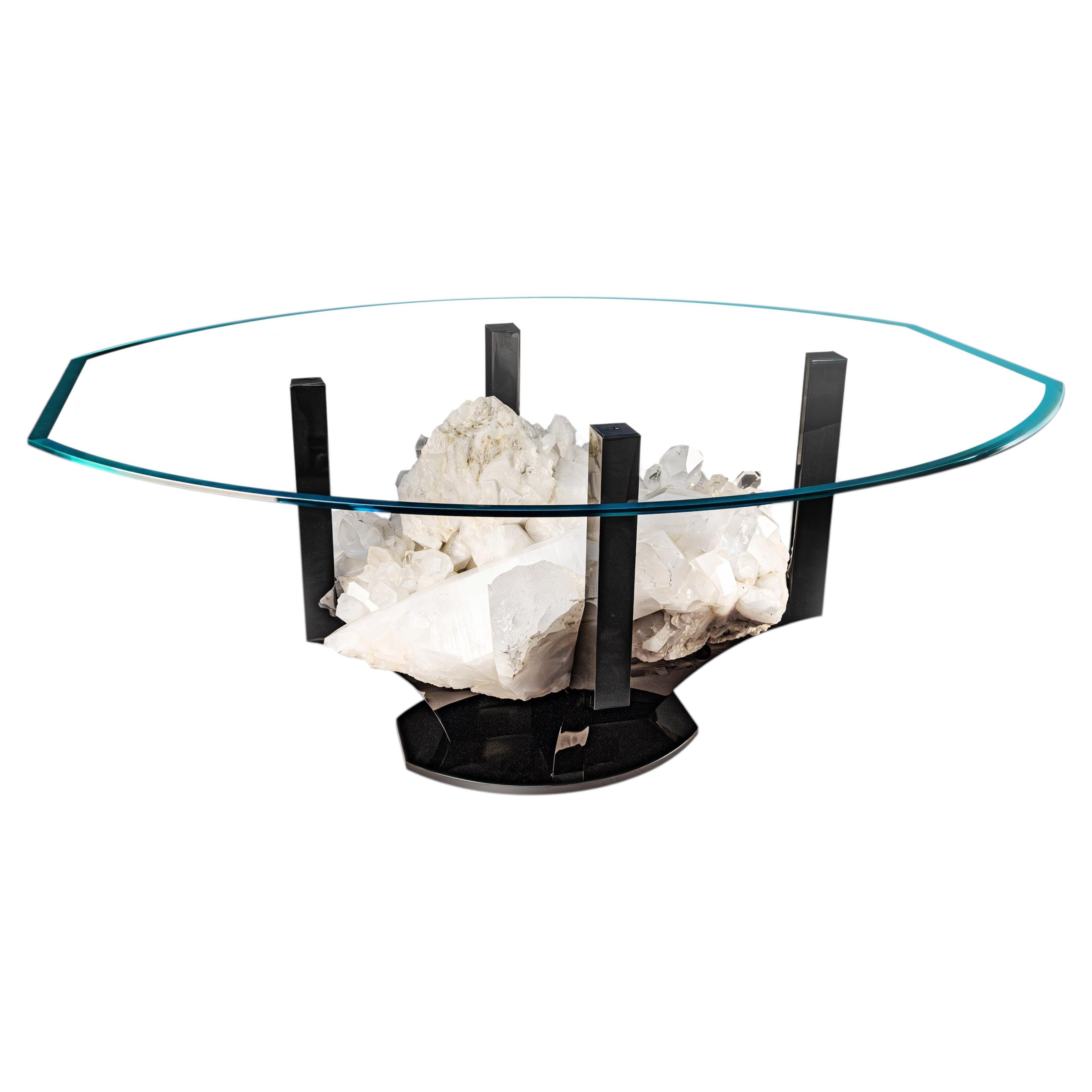 Table basse Amethyst avec base en acier et plateau en cristal vénitien