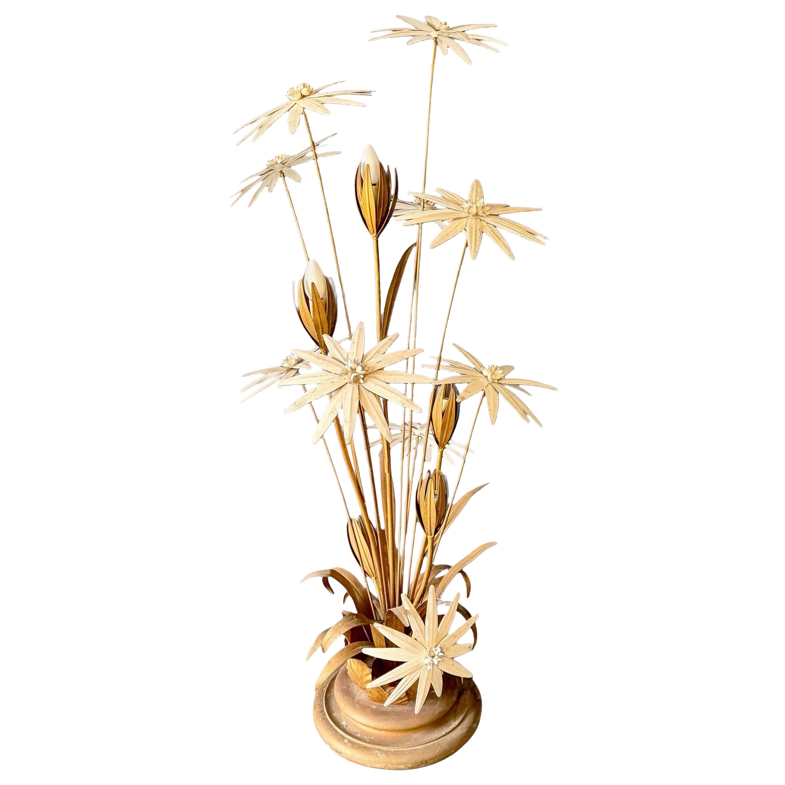 Plafonnier en fer doré avec feuillage en forme de soleil, Espagne, années 1950.