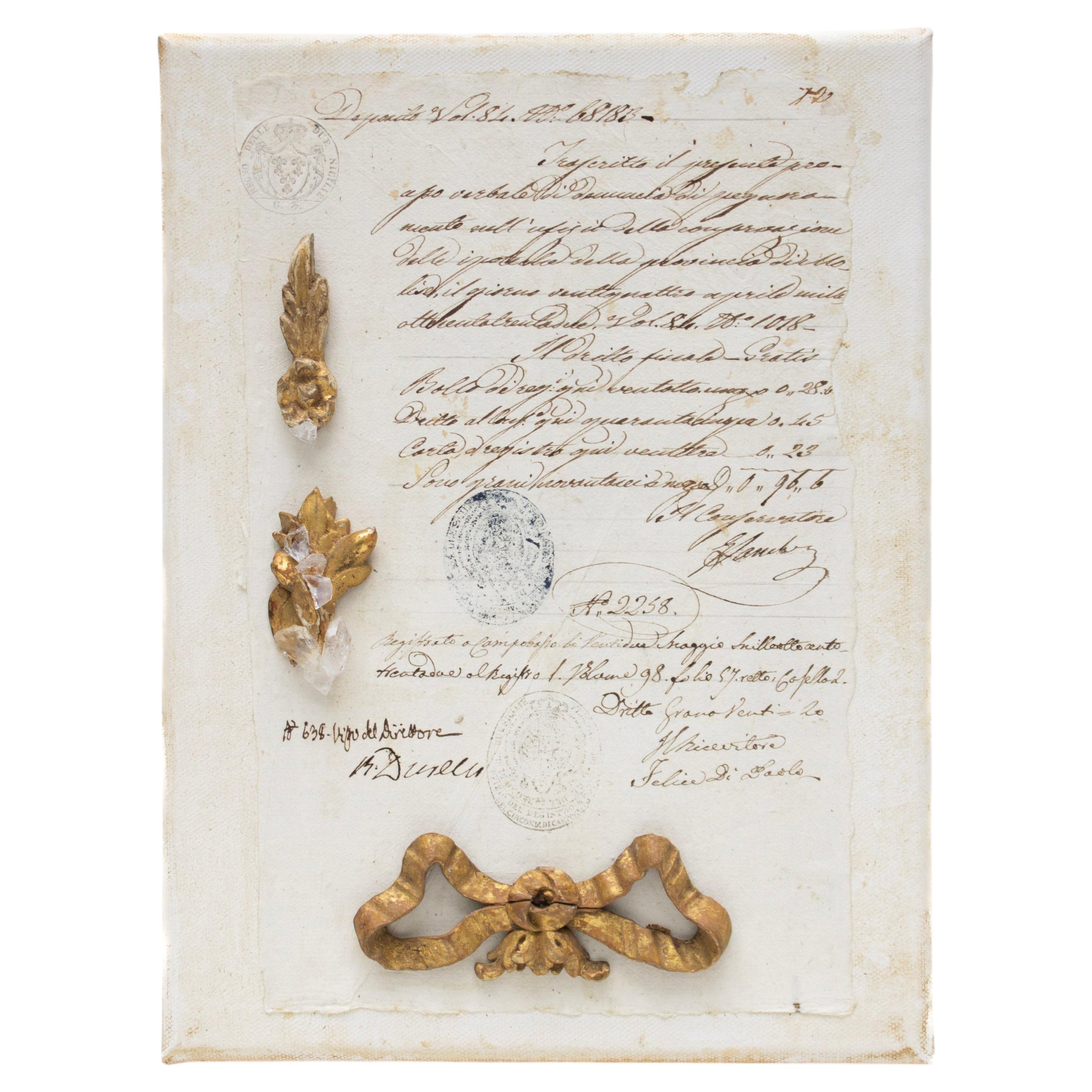 Paire de fragments de feuilles d'or italiennes du 18e siècle avec coquilles d'huîtres