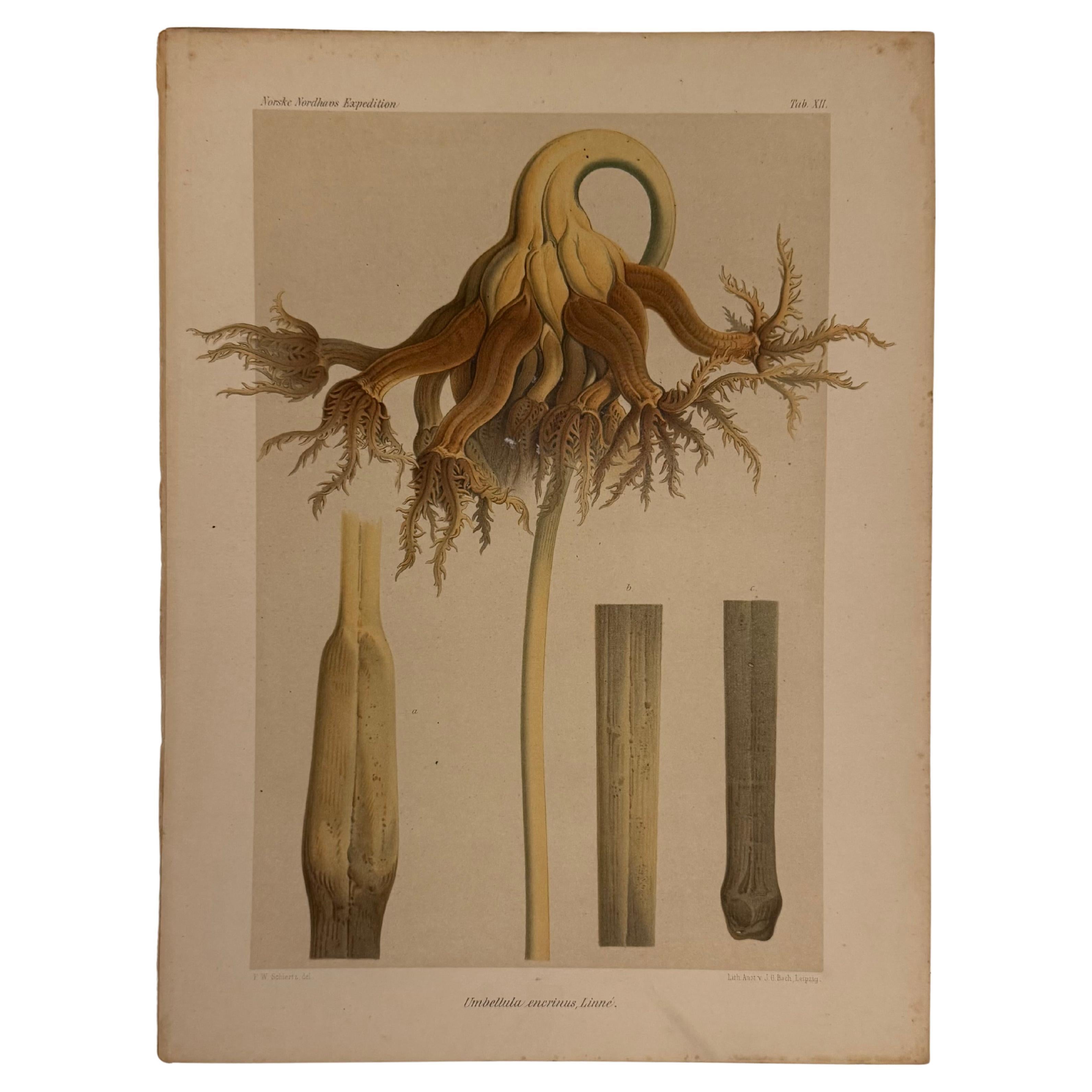 Lithographie scientifique originale de 1884 - Umbellula encrinus