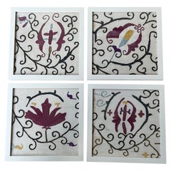 Fragment de broderie ottomane ancienne encadrée, fin du 19e siècle.