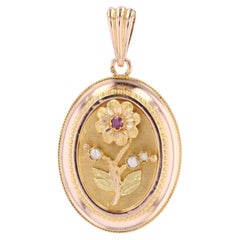 Pendentif ancien en perles et lierre en or vert, 14k Or Artful Green