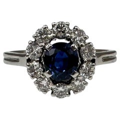 Bague ancienne en platine, d'époque édouardienne, saphir et diamant, anneau ovale en forme de halo
