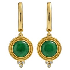 Trifari couronne signée vintage ton or vert jade verre designer boucles d'oreilles clip