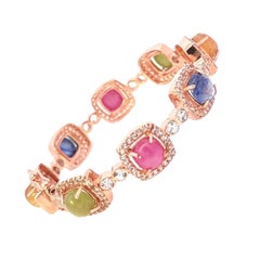Bochic "Capri" Vintage en or et argent 18 carats serti de rubis, de saphirs multiples et de diamants