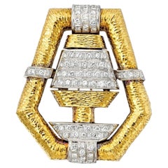Broche plaque géométrique Art déco en platine et diamants, 1,50 carats, vers 1925-1935 Description Broche en diamant de style Art déco, réalisée en platine et datant des années 192...