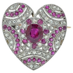 Cette broche présente une étonnante combinaison de pierres précieuses en rubis et en diamants d'une valeur totale de 6,15 carats, serties dans de l'argent sterling 925. Conçue dans u...