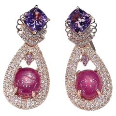 Pendants d'oreilles de style Art déco en améthyste et topaze incolore argent, or