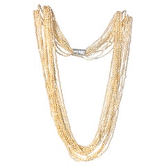 Un style populaire de collier multibrins est le collier torsade , le mot "torsade" signifiant en français "torsade" ou "câble". Ces colliers sont fabriqués en tordant plusieurs fils de perles, perles ou d'autres matériaux et en les fixant à l'aide d'un fermoir. Les mouvements hippie et de contre-culture des années 1960 ont vu les créateurs de bijoux fantaisie célébrer l'expression de soi à travers des colliers multistrates colorés et une abondance de perles, tandis que Ciner a contribué à populariser le collier torsade dans les années 1980 avec des fils de perles de verre souvent retenus par des fermoirs en forme de tête d'animal.