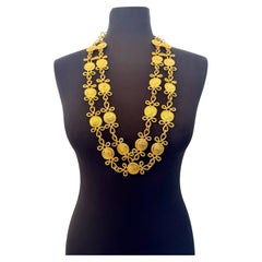 Il s'agit d'un collier à maillons modernes de la marque Anne Klein datant des années 1990. Il est composé de cercles et de carrés en or russe percés. Ce collier réglable en longueur ...