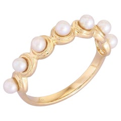 Bague moderniste/brutaliste en or jaune 14k de 0,03 carat de diamant et de perle Taille 6,25