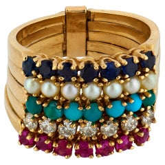 Bague en turquoise et perles Or 15ct Poinçonné Birmingham Date Lettre portée Makers Mark W.B Bague à panneau rectangulaire sertie de quatre perles de rocaille naturelles en forma...