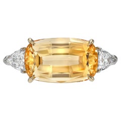 3.36 Carat Natural Yellow Sapphire White Diamond 14 Karat Yellow Gold Band Ring