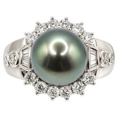 Accentué par deux lignes incurvées, serti d'une pavée française de 48 diamants ronds de taille brillant de 1,01 carat, couleur F/G, pureté VS-2.