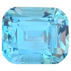 La pierre provient du Brésil et est tout simplement exquise. La bague est de taille 7,75. La pierre est une topaze bleue suisse taillée en baguette et mesure 15,70 carats. Il mesure...