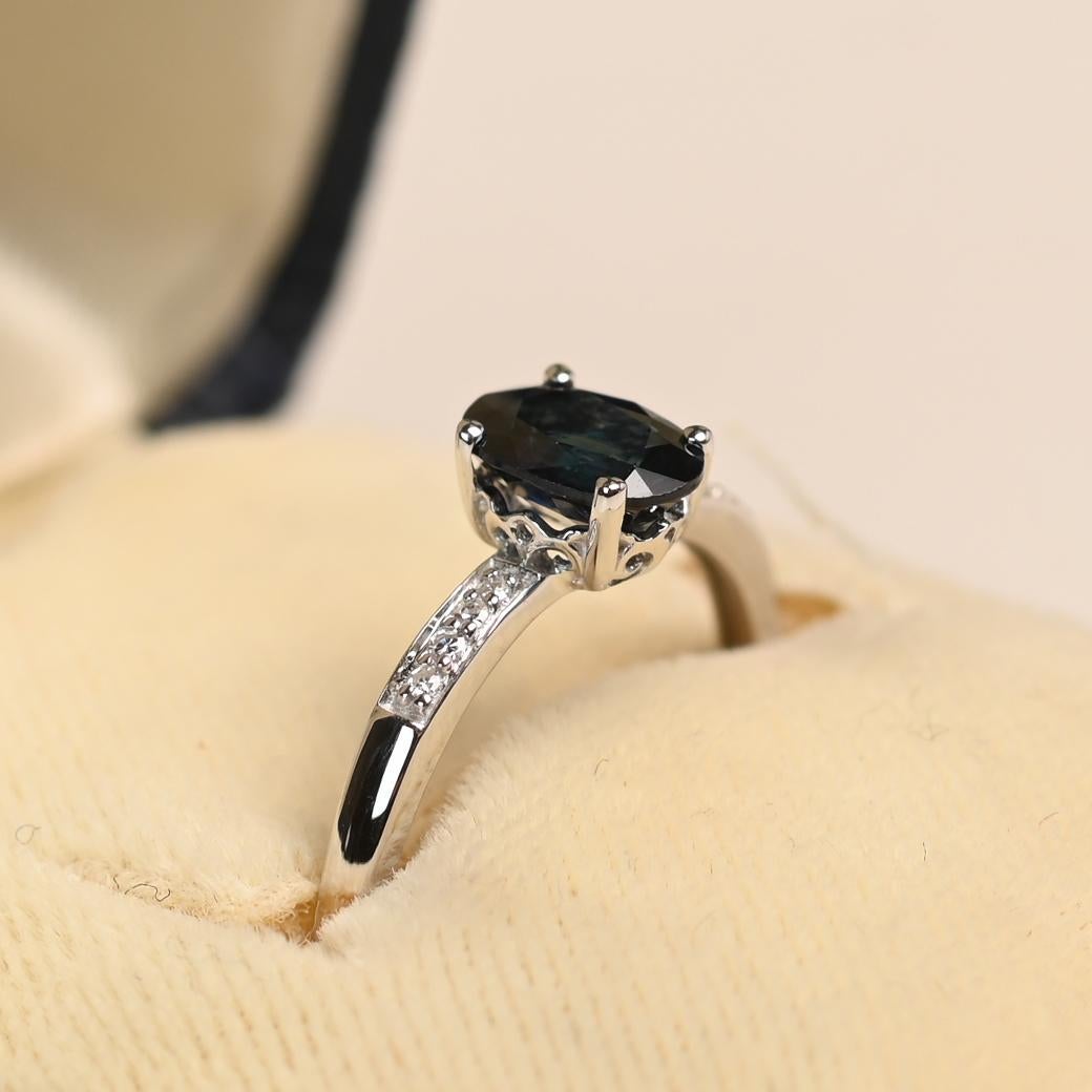 Articles similaires à Bague en or blanc 14k, saphir ovale (environ 0,9 carats) et diamants, sertis clos