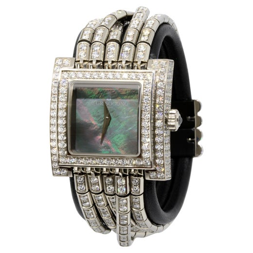 Les boucles d'oreilles , les bracelets , les bagues et d'autres pièces audacieuses ornées de diamants noirs de De Grisogono ont attiré l'attention d'acheteurs fortunés dans les années 1990, ce qui a permis à la marque de connaître une ascension fulgurante. Elle est entrée dans le monde des montres de luxe en 2000 avec l'Instrumento Uno pour hommes, ce qui a conduit au développement de la Crazy Skull en 2015. Ce garde-temps ludique, fabriqué sur mesure, peut être orné de jusqu'à 45 carats de pierres précieuses.