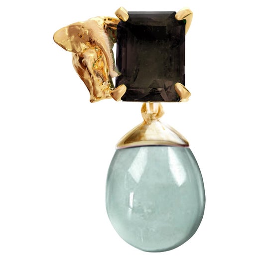 Ces boucles d'oreilles contemporaines, nommées d'après la Mésopotamie, sont composées de quartz vert clair à la menthe naturelle et de deux éléments dorés différents : l'éléphant et ...