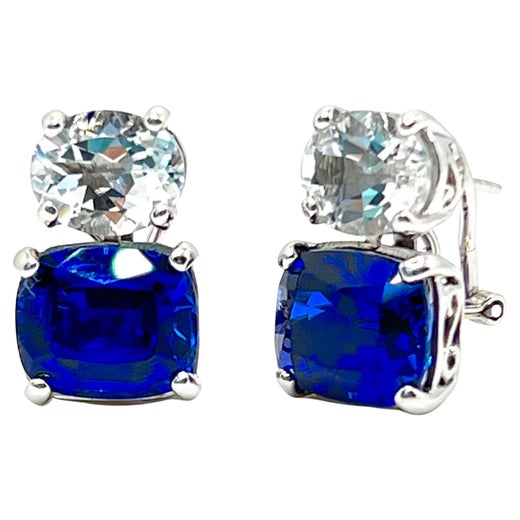 Superbes boucles d'oreilles à double topaze bleue ovale et saphir