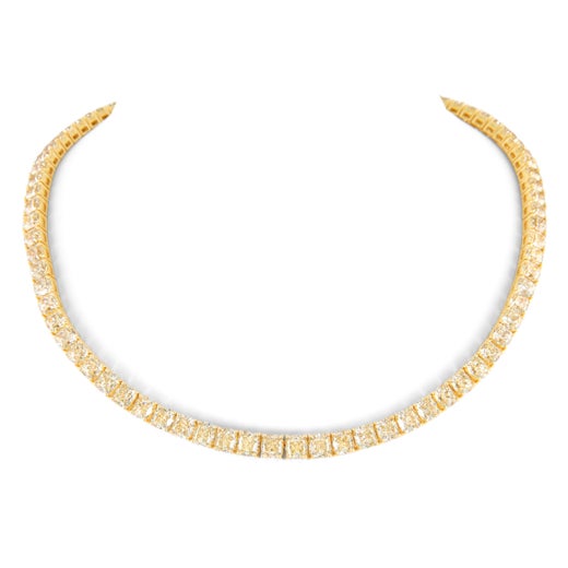 671 diamants ronds, 5,85 carats au total. Couleur F/G et pureté SI. Or jaune 18k, 24.84 grammes, 7 pouce...