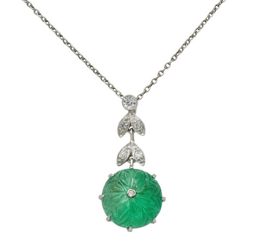 Diamant, Jade, Perle, Or 14 carats, Or blanc