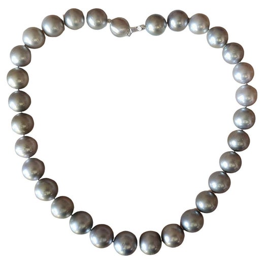 La longueur du collier est de 61 cm. La taille des perles rondes lisses est de 10.5 mm.