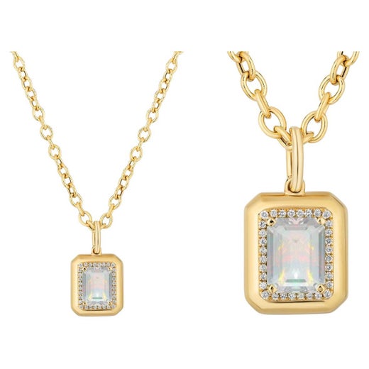 Mélange captivant de sophistication moderne et d'élégance intemporelle, le pendentif serti de topazes bleues de Manhattan London est une pièce d'apparat raffinée. Présentant une rich...