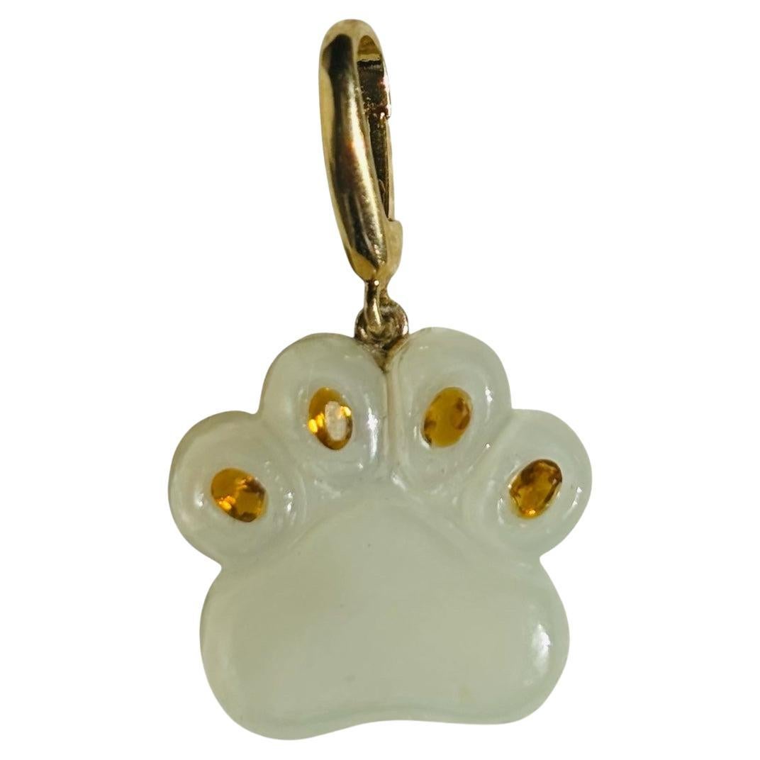 Patte de chien en pierre de lune sculptée à la main avec quatre citrines ovales - une dans chaque patte.