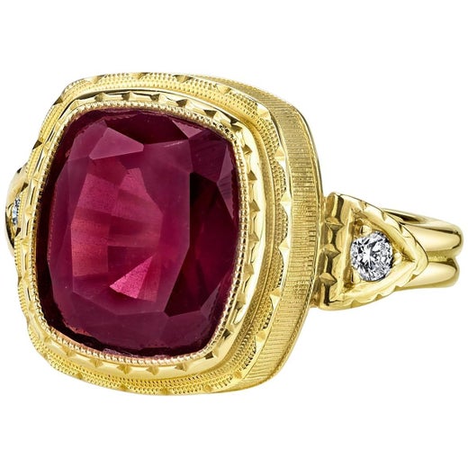 Ce spinelle rouge foncé de taille coussin mesure 9,27 x 8,53 x 7,13 millimètres et pèse 4,60 carats. Il a la couleur classique du spinelle rouge et serait magnifique sur une bague à trois pierres ou une bague de fiançailles. La forme se prêterait également à une variété de pendentifs. Le spinelle naturel manque souvent de profondeur en raison de la forme naturelle du cristal, mais cette gemme a de belles proportions, permettant une brillance exemplaire. Elle est accompagnée du rapport #5201169853 du Gemological Institute of America qui indique qu'il s'agit d'une pierre non chauffée...