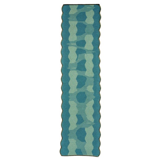 Chemin de table contemporain en laine surteinte nouée à la main, de couleur verte