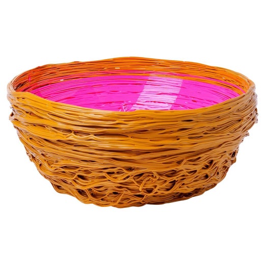 Petit plateau rond Try-Tray en fuchsia foncé mat et bronze de Gaetano Pesce