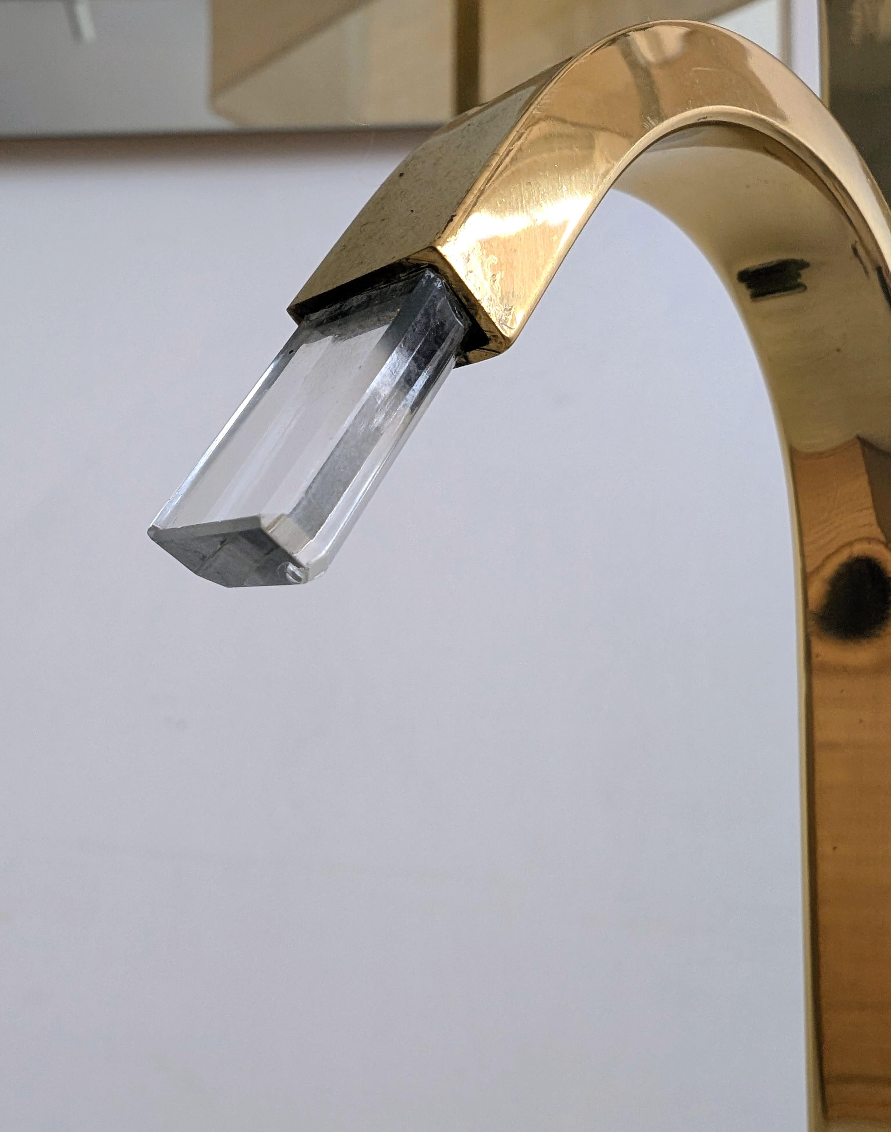 Tout afficherLampadaire vintage palmier stylisé en laiton, chrome et lucite 1980