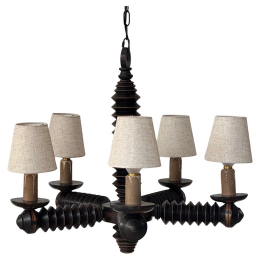 Paire de lampes en bois sculpté de Charles Dudouyt