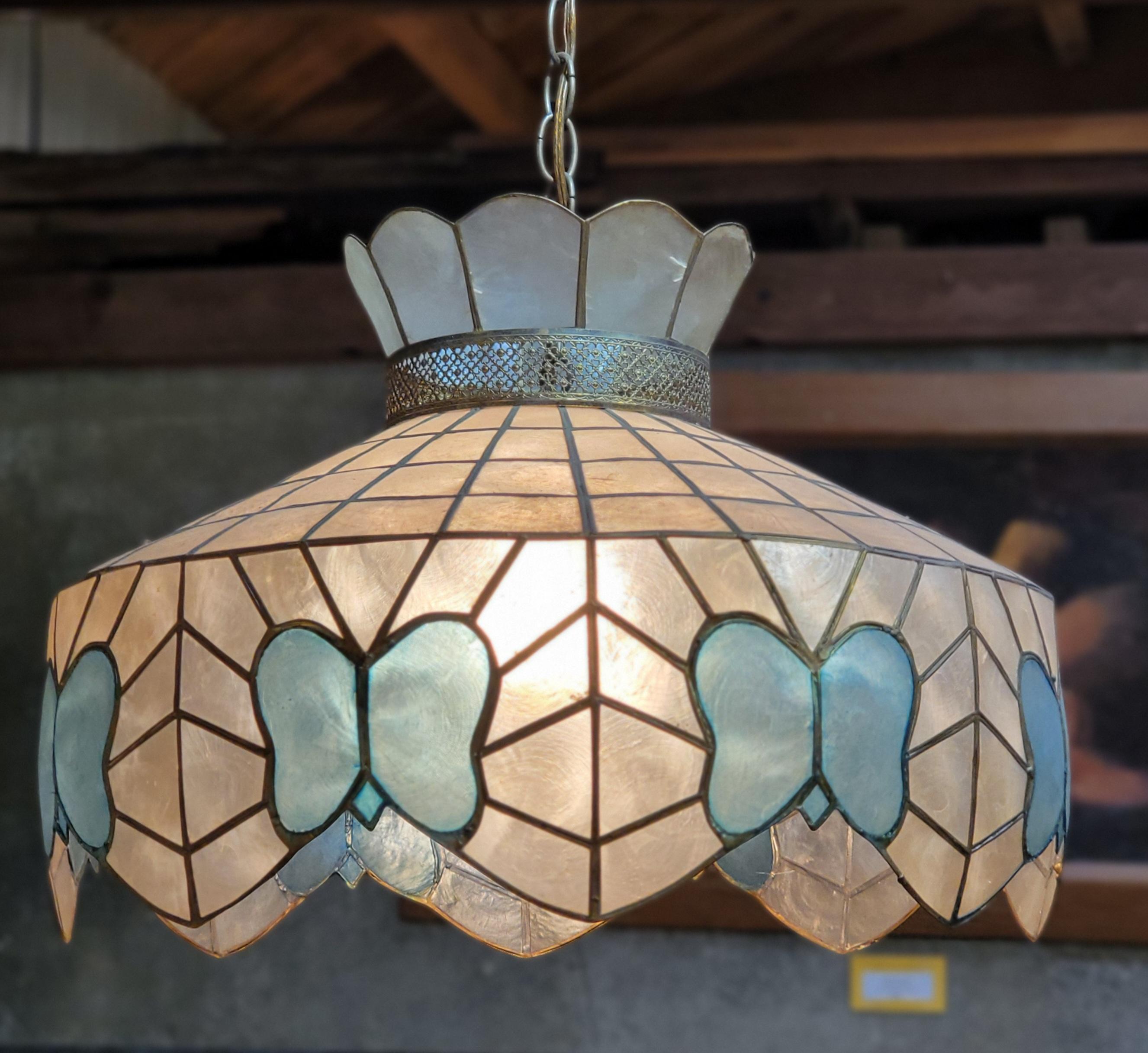 Lampe pendante de luxe en coquillage Capiz, belle pièce fabriquée à la main dans les années 1970