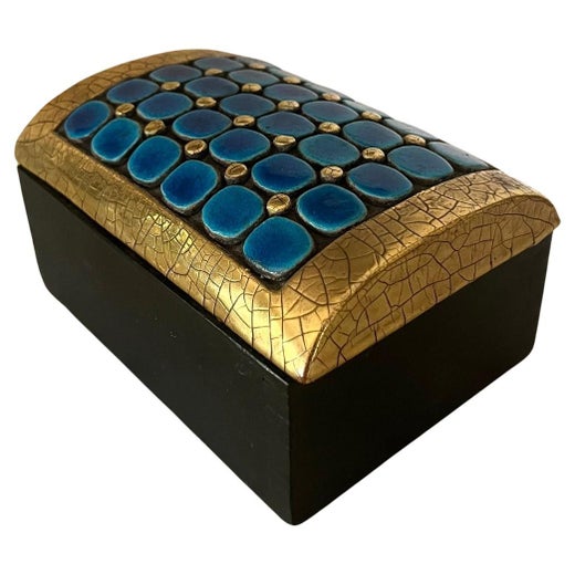 Marie-Thérèse Espelt, mieux connue sous le nom de Mithé Espelt, a été une force dominante dans la céramique du milieu du 20e siècle en France. Mithé est connue pour ses modernes céramiques miroirs muraux, cendriers dorés et émaillés et autres objets ornés et boîtes, souvent ornés d'oiseaux et de couleurs vives. Elle préférait ne pas signer ses pièces et, par conséquent, une grande partie de son travail a été mal attribuée, notamment au céramiste français François Lembo.