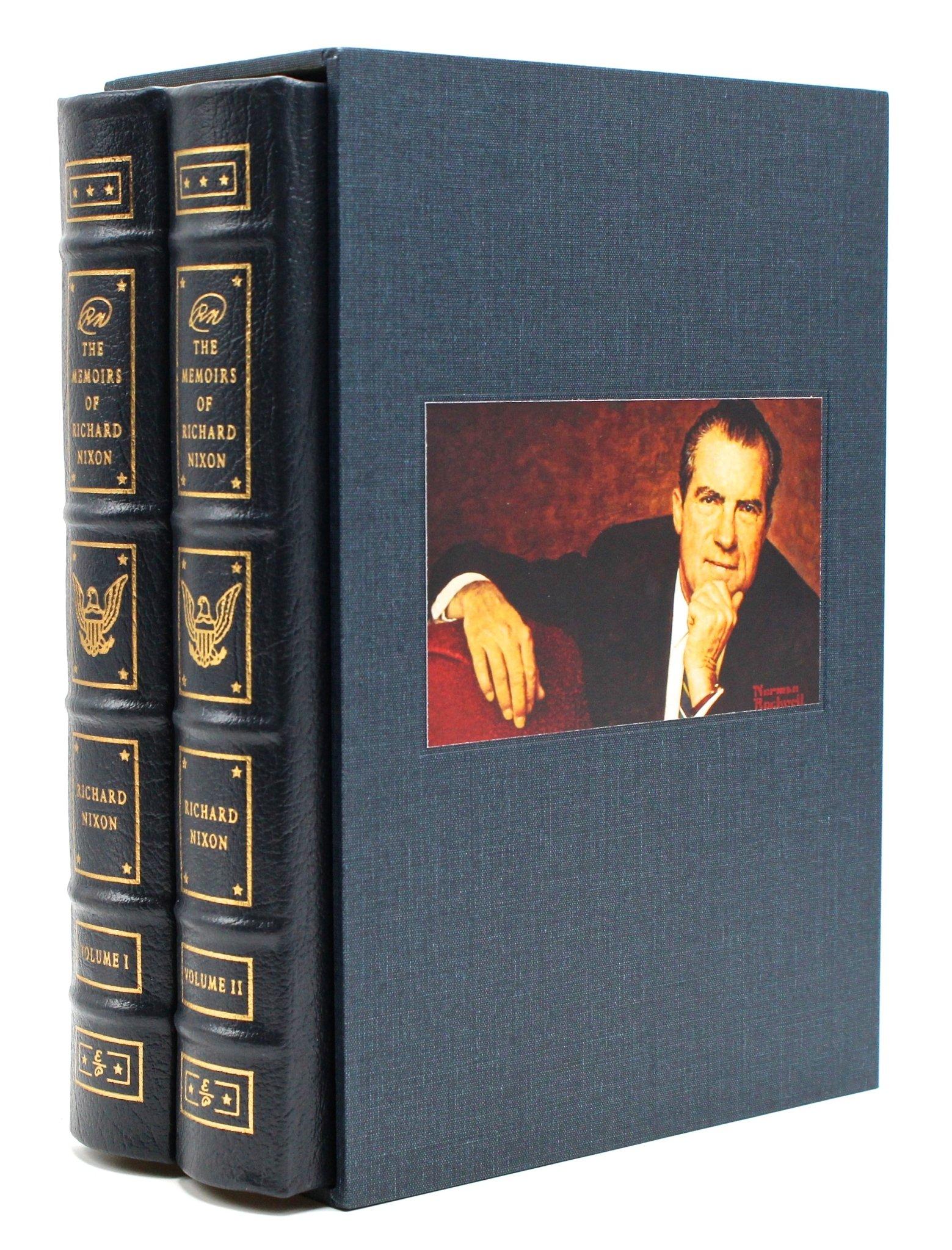 Nixon, Richard. Les mémoires de Richard Nixon. Norwalk : The Easton Press, 1988. Ensemble de deux volumes. Relié en plein cuir avec gaufrage en or 22 carats. Présenté dans un étui personnalisé assorti.