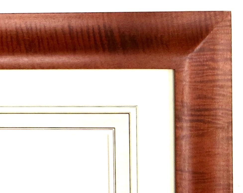 Magnifique cadre en bois massif d'érable piqué, monté professionnellement avec une considération et un support d'archivage ; plexiglas UV sur le devant ; touche agréable avec le double mat.