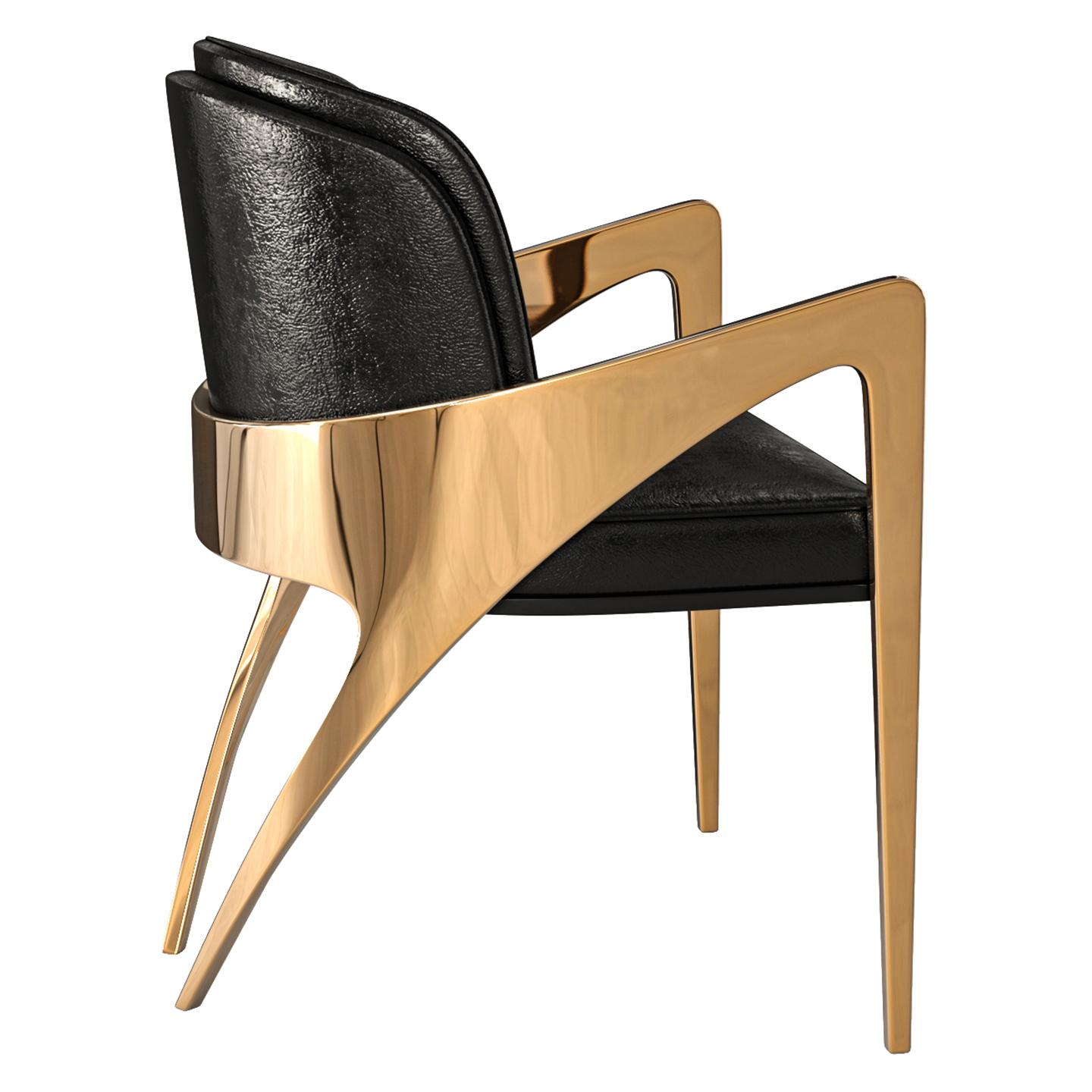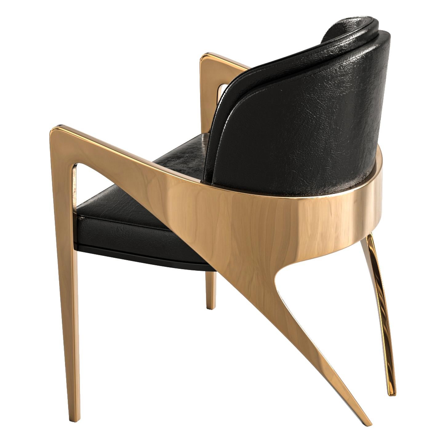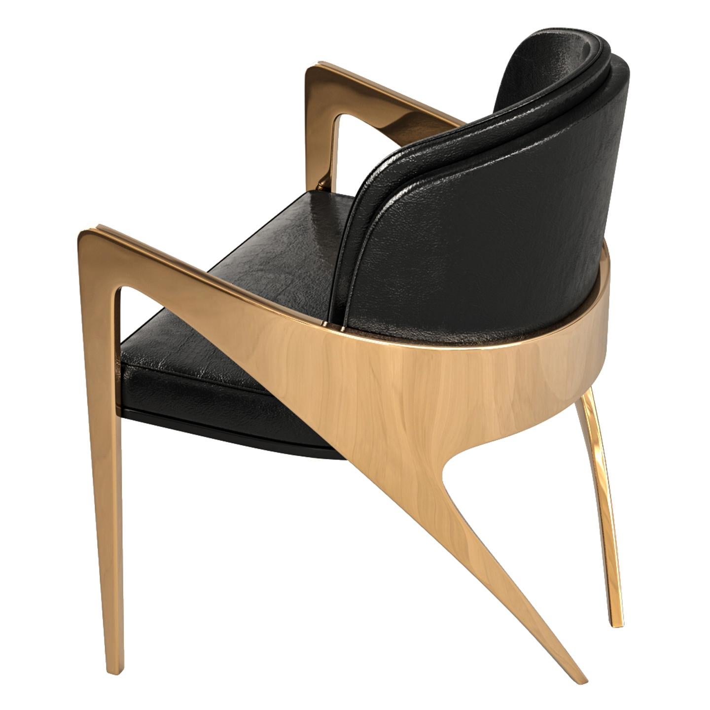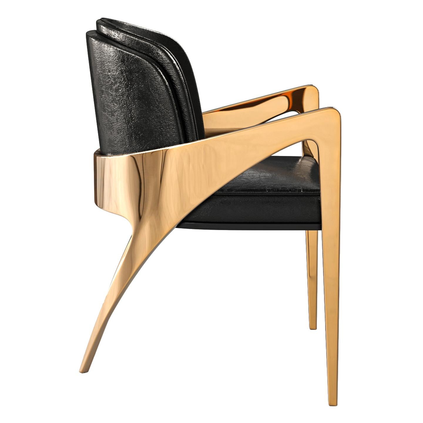 "Amalfi" Chair, with Bronze and Tailor Made Leather, Istanbul