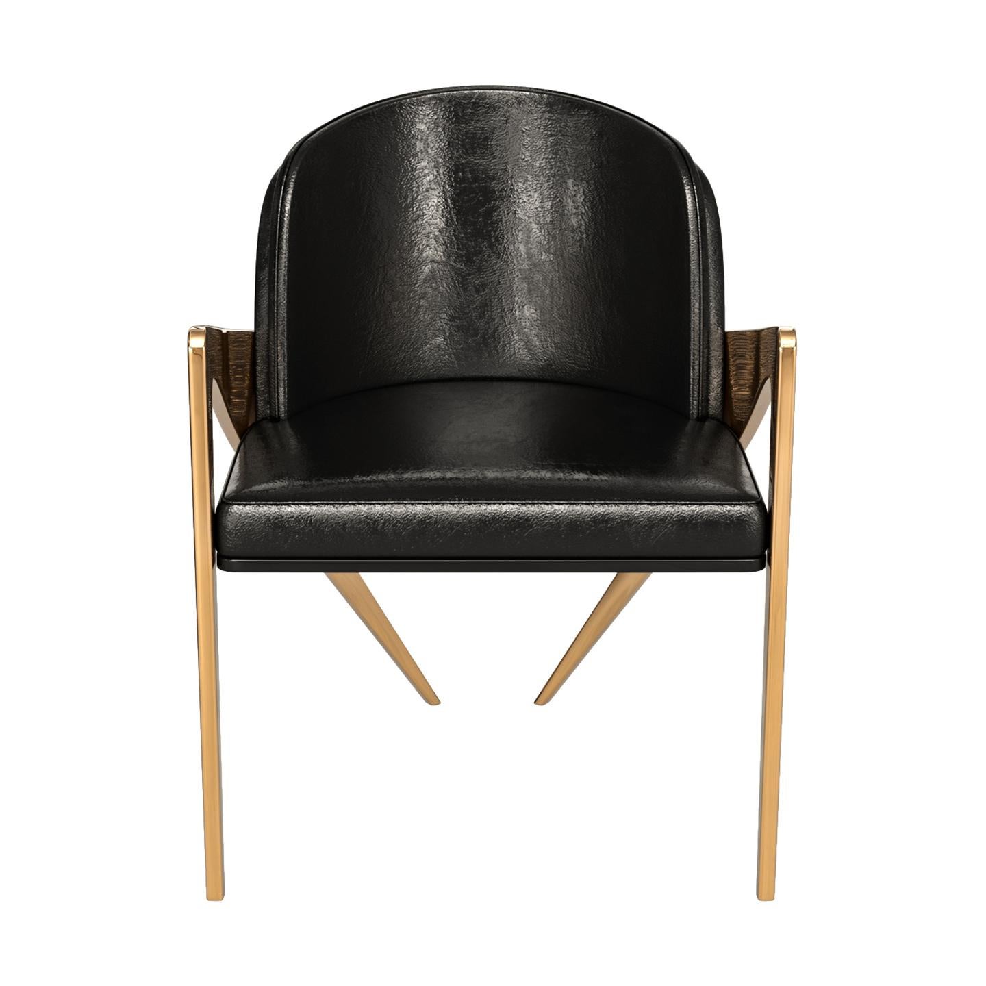 Chaise Prima en cuir et structure en bronze authentique