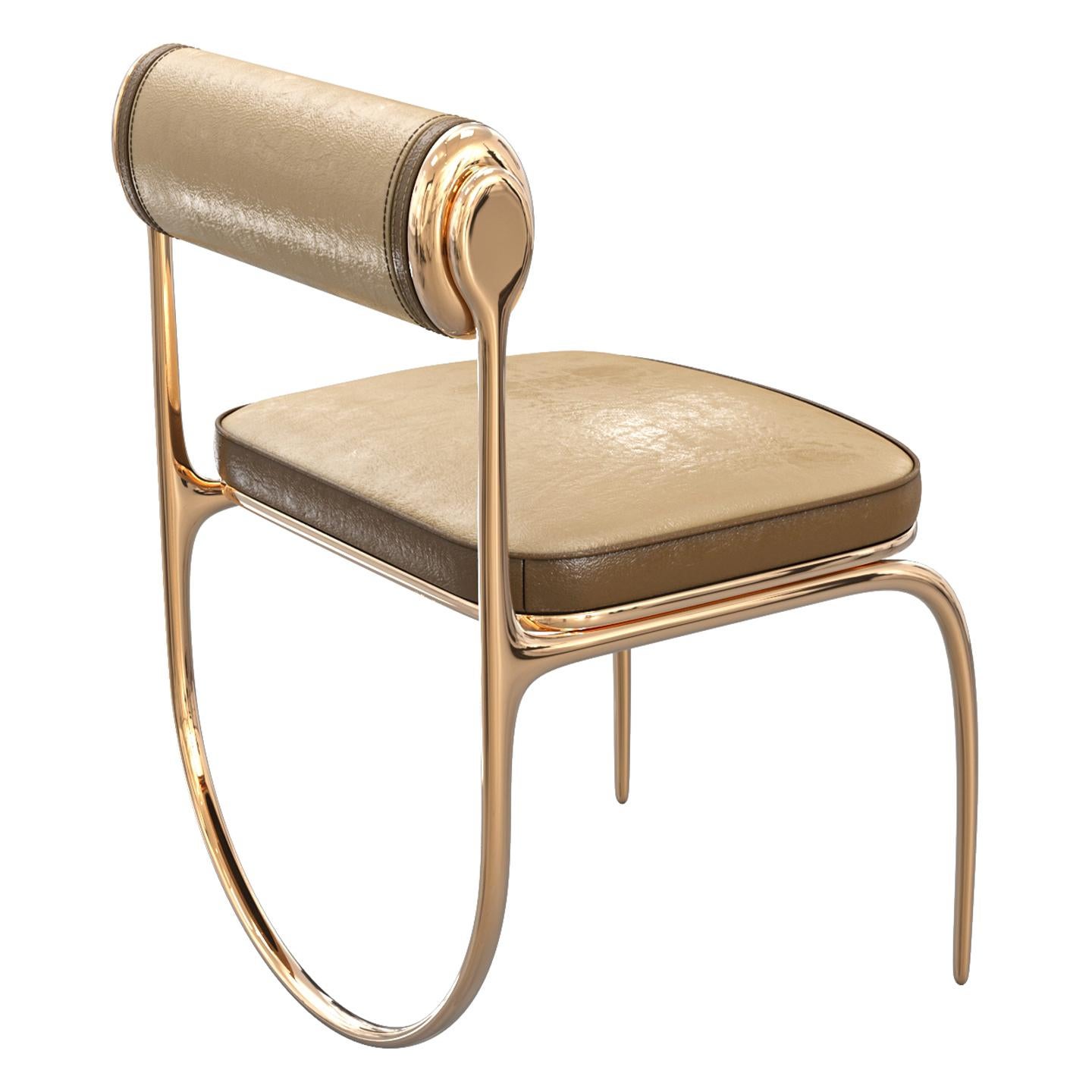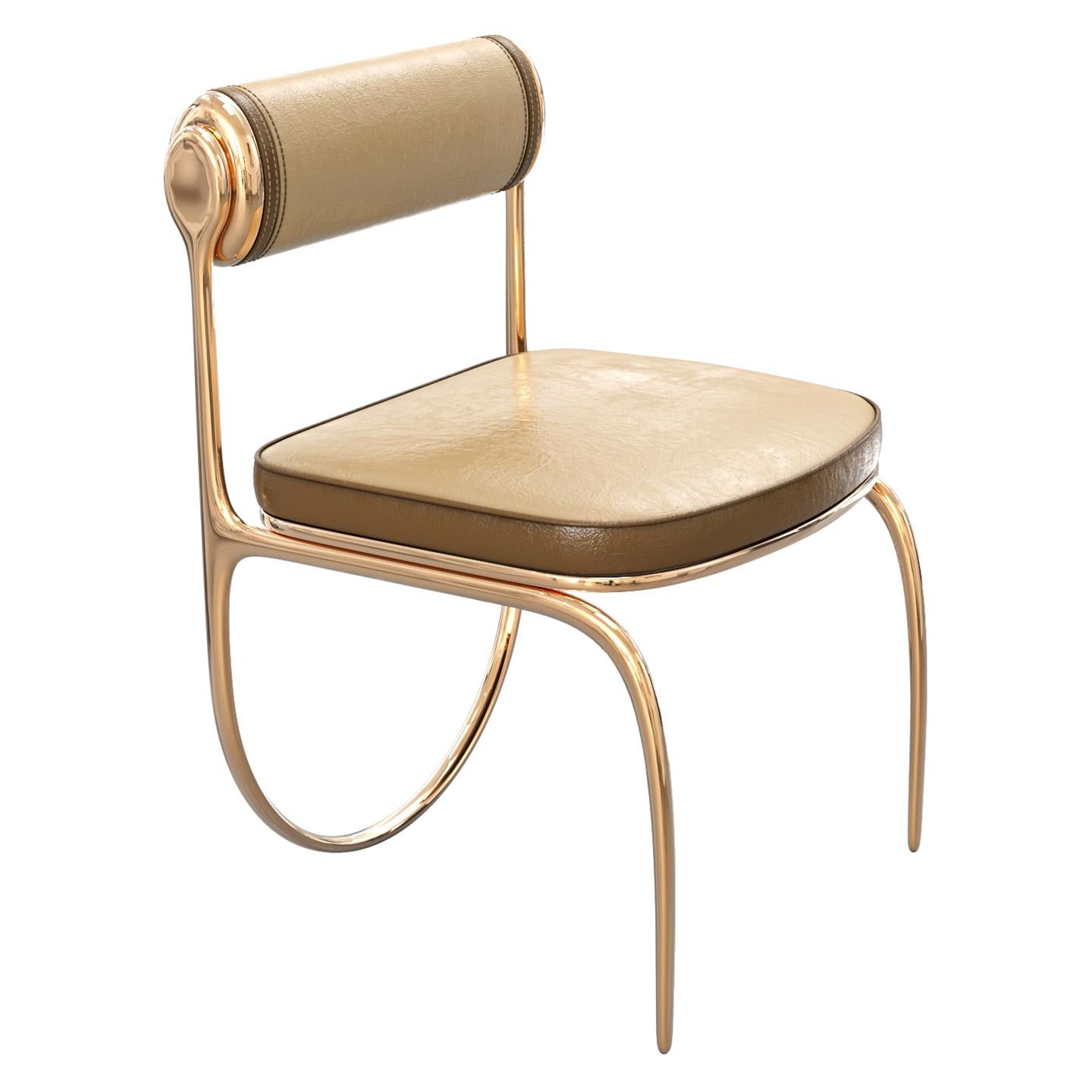 "Grecale" Chair, Set of Eight, with Bronze & Stainless Steel, Tailor Made Leather, Istanbul.